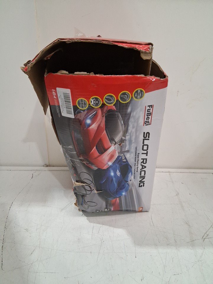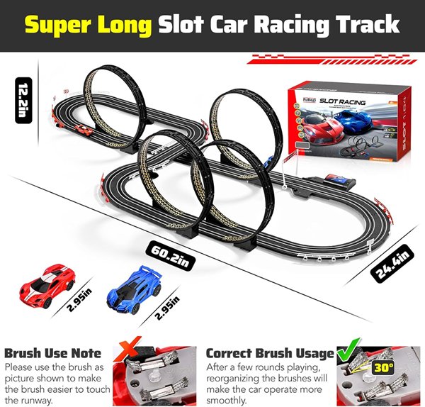 fubegi slot car racetrack with plug-in remote controlled track cars - 1:64 scale - red/blue/black