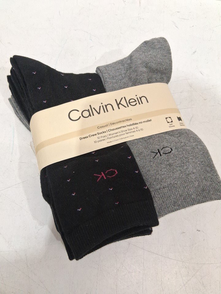 10pwomen's calvin klein casual dress crew socks - size 4-10 - assorted grey black prints (style: 1579942)
