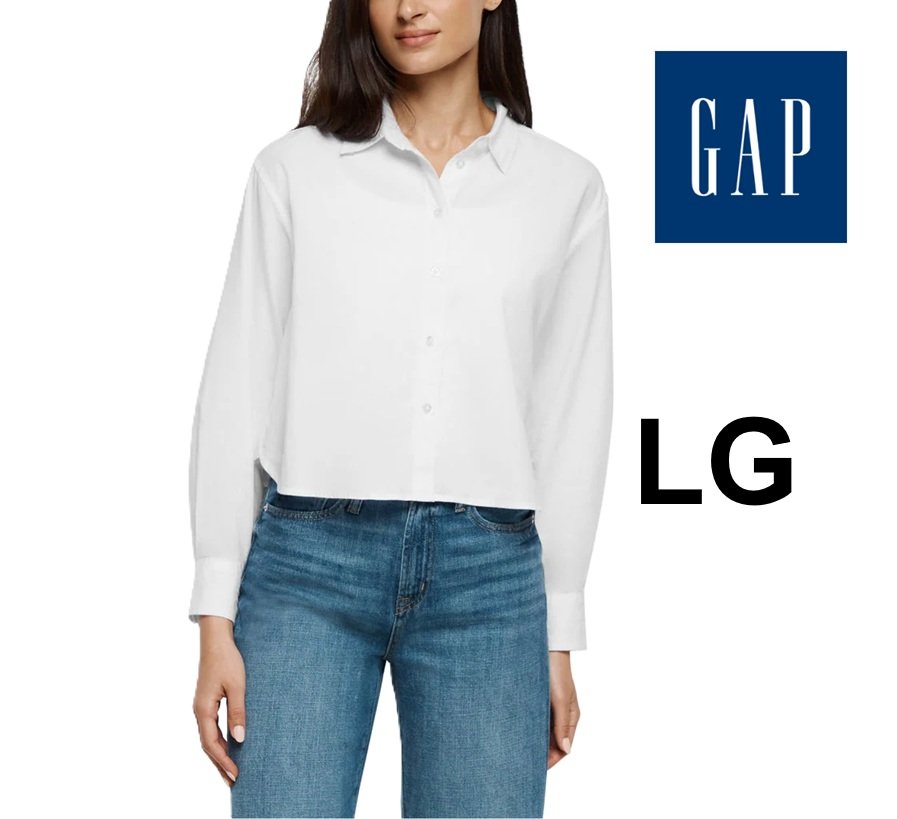 women's gap collard button up front Cropped Poplin Top - large - white (model: 19045880)