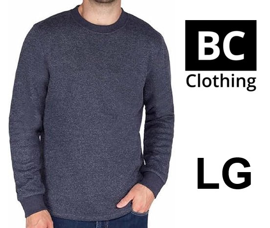 MENS BC CLOTHING Fleece Lined Crew Sweatshirt - LARGE - Navy
