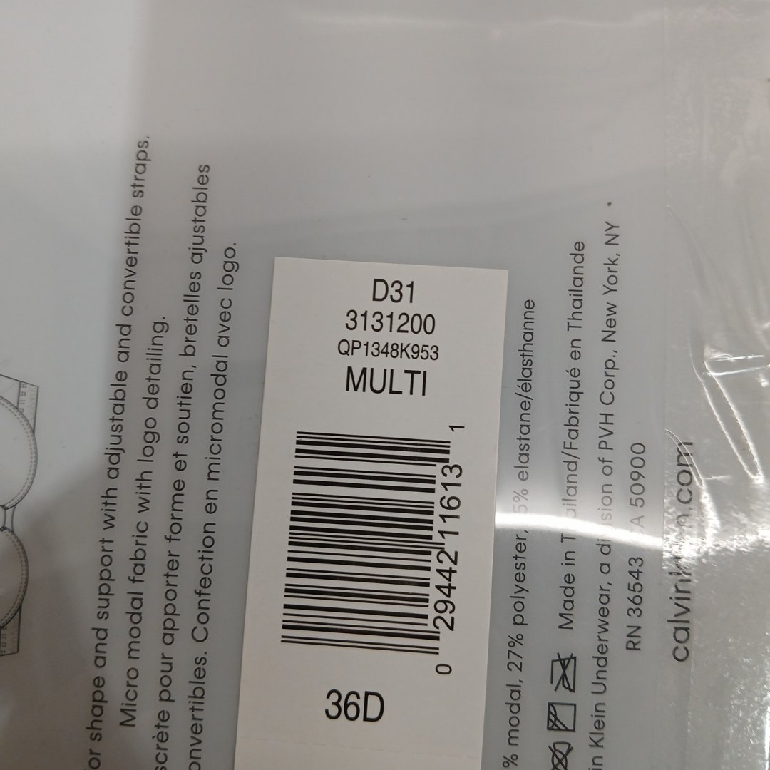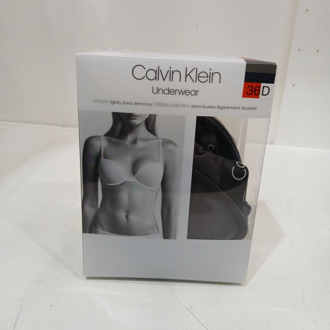 2PK WOMENS CALVIN KLEIN LIGHTLY LINED DEMI BRA - 36D - BLACK/CHARCOAL (MODEL: 3131200)