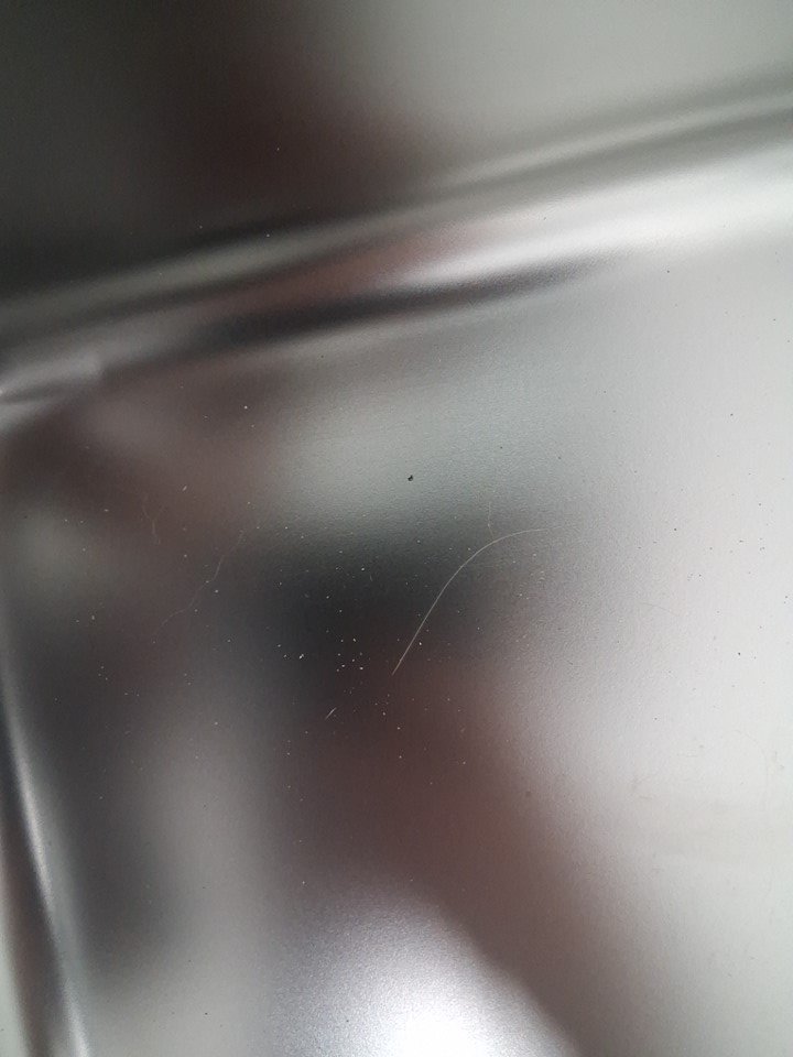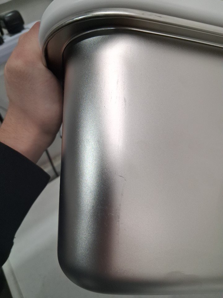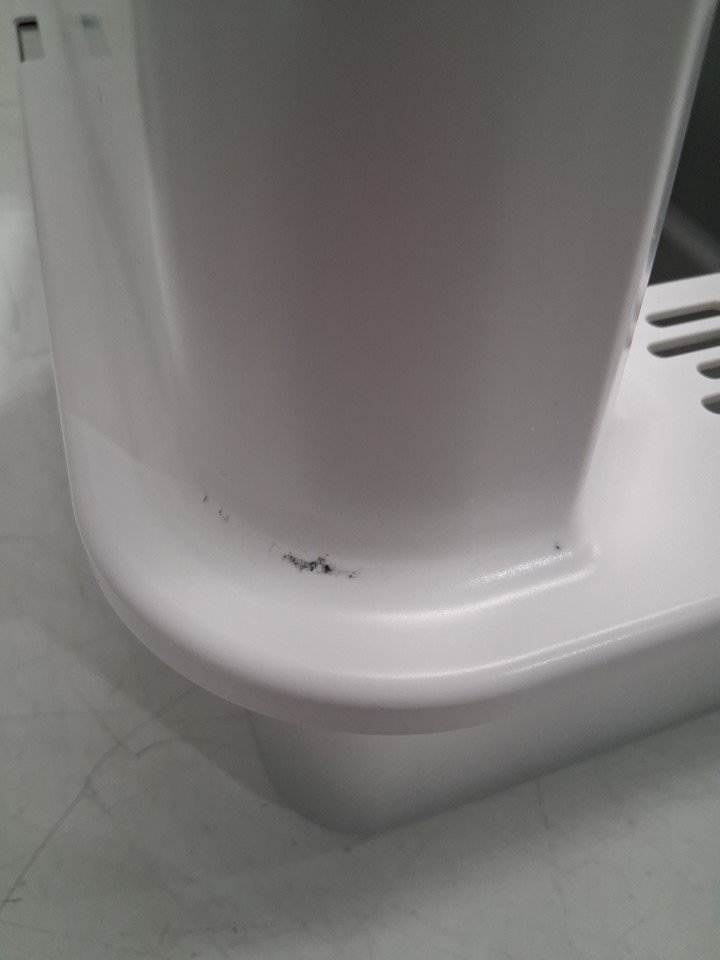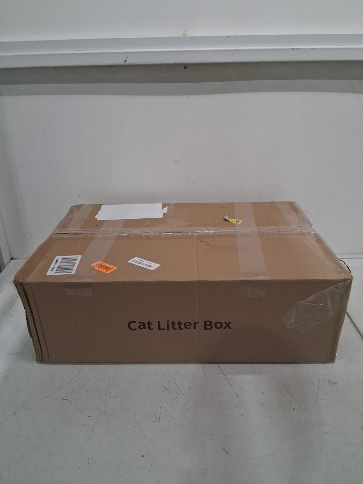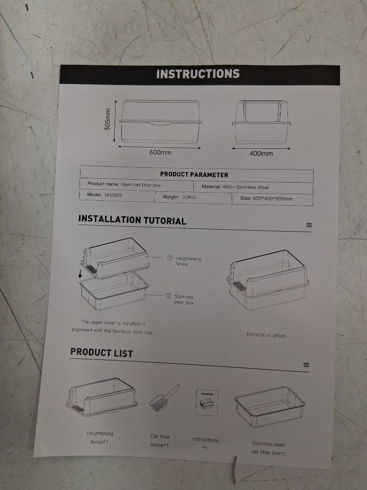 There are very minor signs of use on the litter box, there is a very small amount of hair and litter pieces from previous use. The litter box also has some scuff marks on the outside of the steel pan and white plastic top. The scoop and bags look like they have not been used/opened.