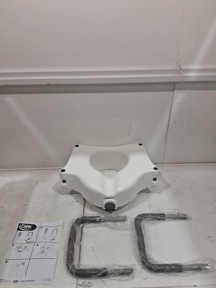CAREX E-Z LOCK RAISED TOILET SEAT WITH HANDLES - 300lbs capacity - WHITE - (MODEL: B31877)