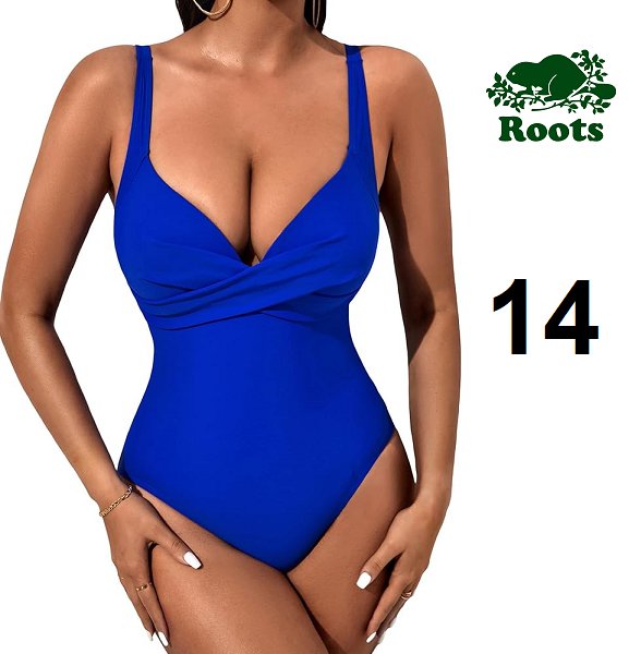 womens roots cross front one piece swimsuit - 14 - royal blue - (style: 1795104)