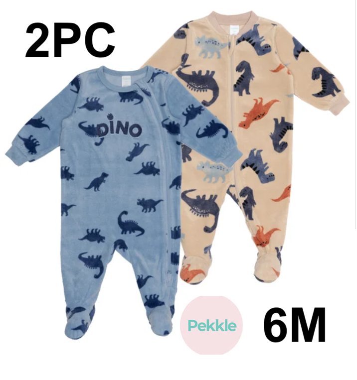 2pc pekkle fleece footed sleeper- size 6 months- blue/beige dino (style: 9001234)