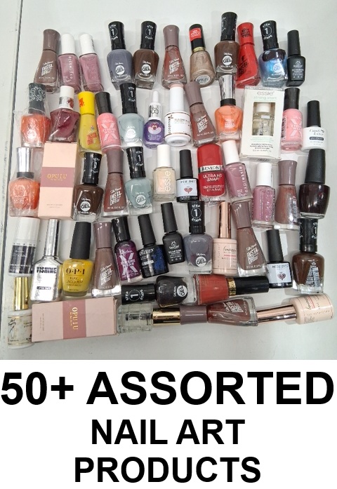50+ ASSORTED NAIL ART PRODUCTS - ASSORTED COLORS AND BRAND