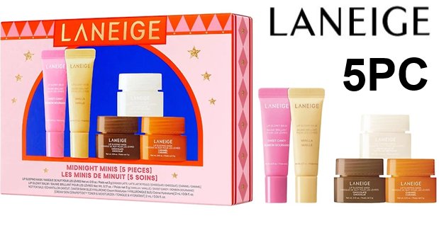 5PC LANEIGE Midnight Minis Lip Glowy Balm and Lip Sleeping Mask Gift Set -