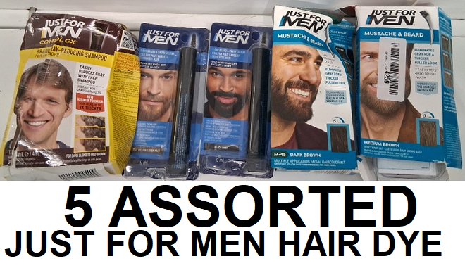 5 ASSORTED JUST FOR MEN BEARD / HAIR DYE - ASSORTED TYPES/COLORS/SIZES