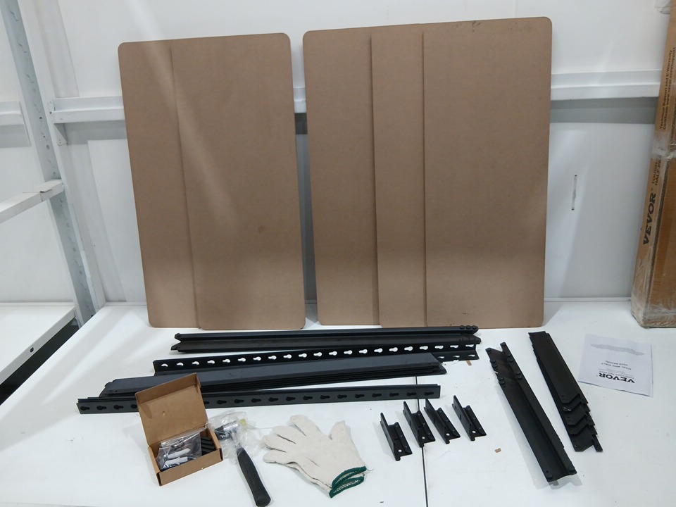 assembly appears to have been attempted previously due to some scratches on the sides of the boards, and some dust and dirt on the metal pieces.