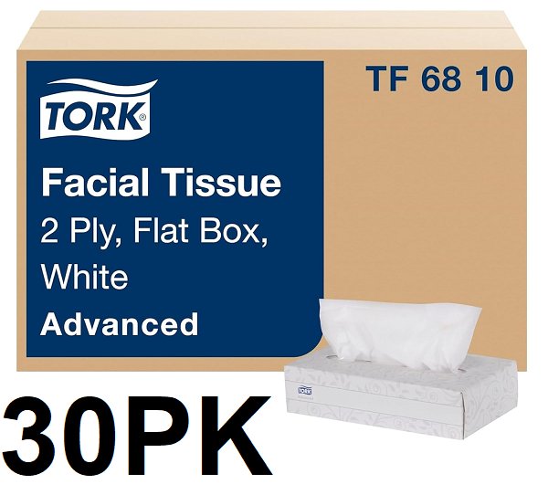 30PK TORK FLAT BOX FACIAL TISSUES - 2ply - WHITE - 100 per pack, 3000 total