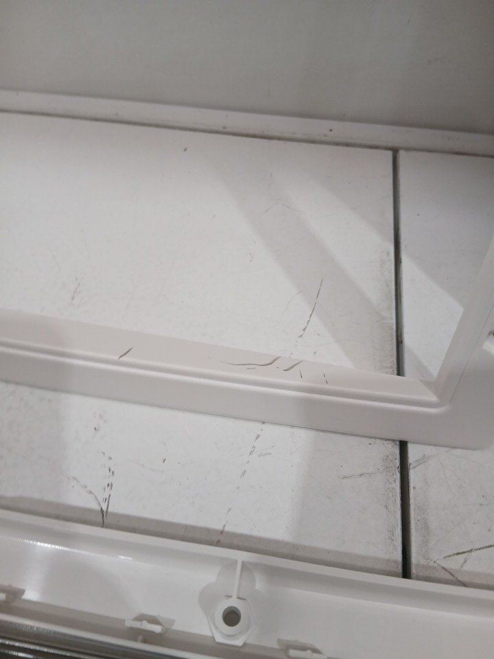 appears to have been lightly used or installed previously. the frame contains some scratch marks and the rubber pieces contain some minor dirt and dust.