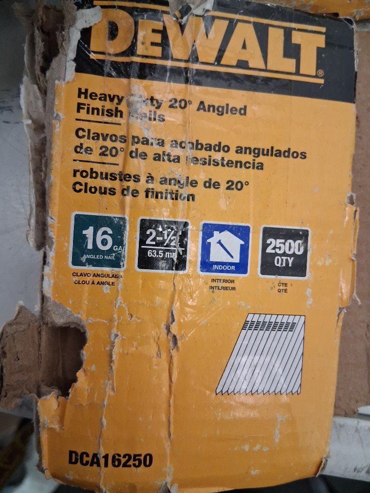 **approximately** 2500PK DEWALT DCA16250 2-1/2-Inch by 16 Gauge 20-Degree Finish Nail