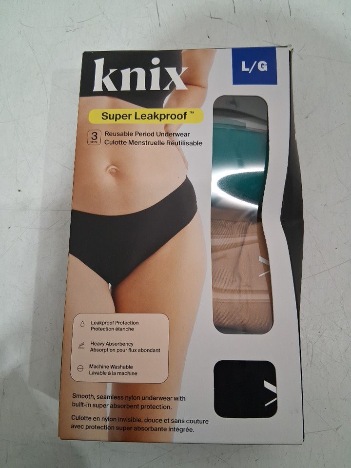 3PK womens knix Super Leakproof Reusable Period Bikini Underwear- LARGE - black/blue/beige