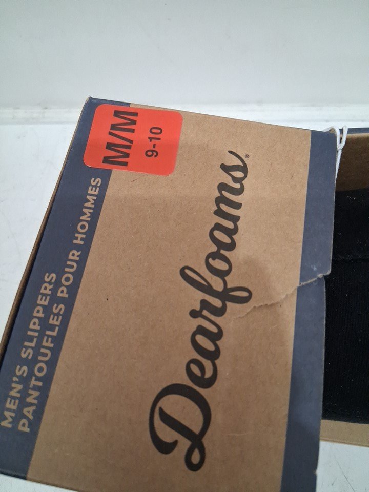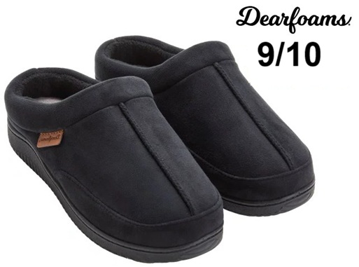 MENS DEARFOAMS MEMORY FOAM SLIPPERS - 9/10 - BLACK - (STYLE: 1899650)