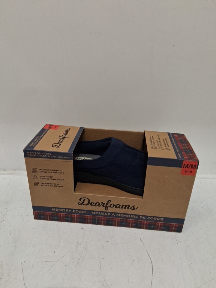 MENS DEARFOAMS MEMORY FOAM SLIPPERS - 9/10 - NAVY BLUE (STYLE: 1899650)