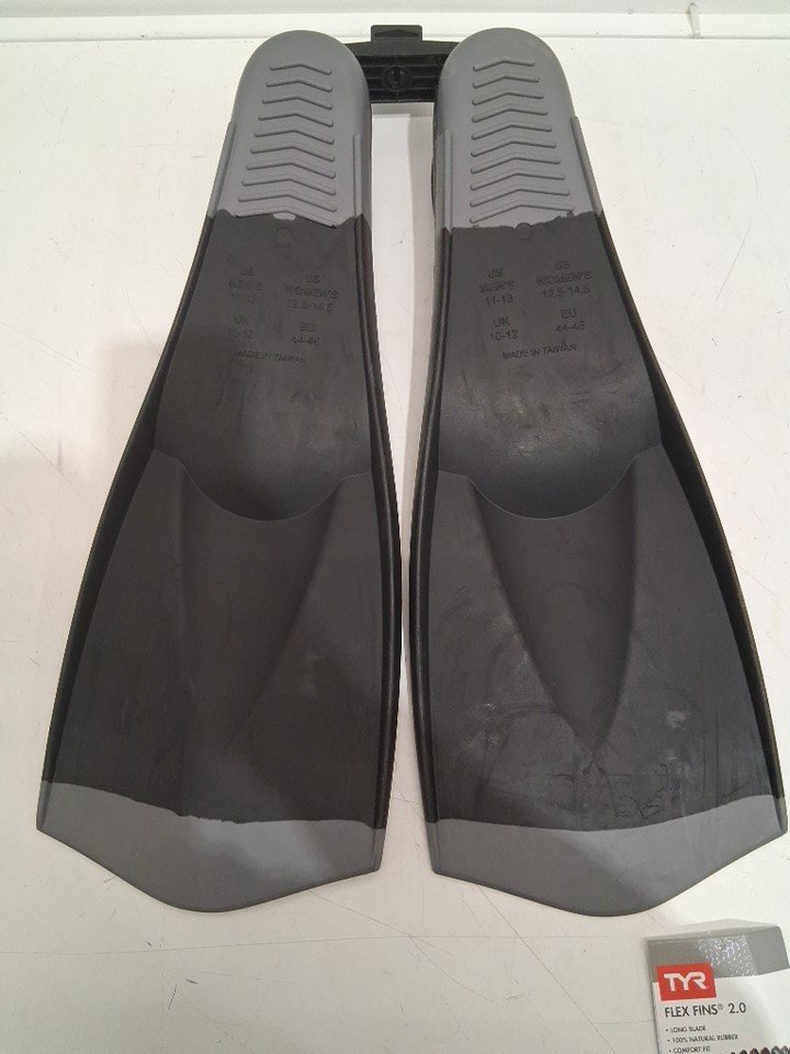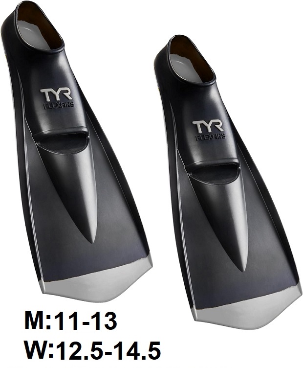 Adult Tyr Flexfins Swimming Flippers 2.0 - Mens Size 11-13 - Womens size 12.5-14.5 - Black/Grey