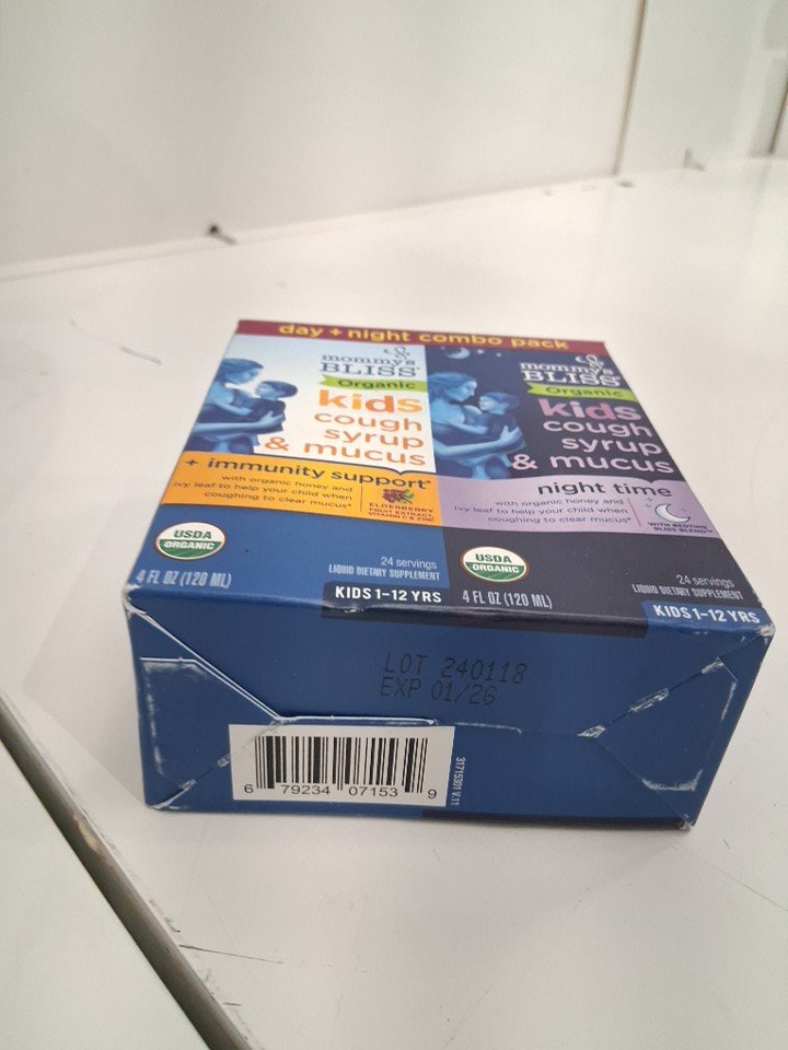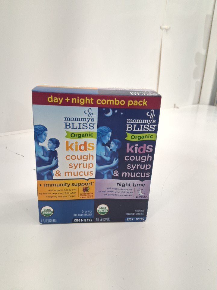 2PC KIDS MOMMY'S BLISS DAY AND NIGHT ORGANIC COUGH SYRUP AND MUCUS COMBO PACK - FOR KIDS 1-12 YEARS - 120ML EACH BOTTLE