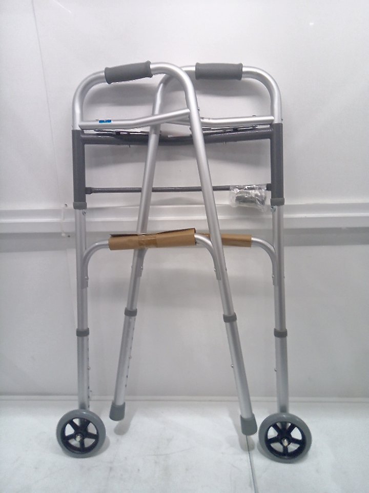 MEDLINE GUARDIAN TWO BUTTON FOLDING WALKER WITH WHEELS - GREY (MODEL: MDS86410W54)