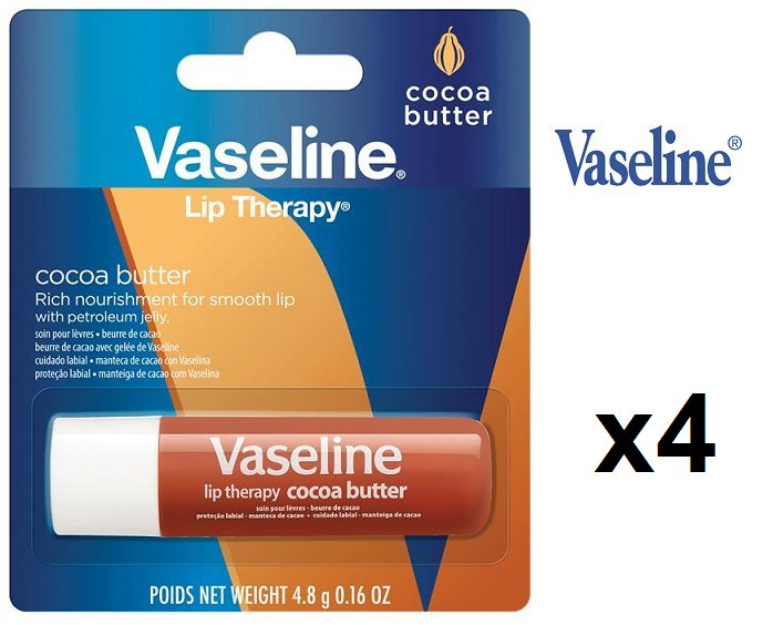 4 vaseline lip therapy rich nourishment for smooth lips with petroleum jelly - 4.8g each - cocoa butter