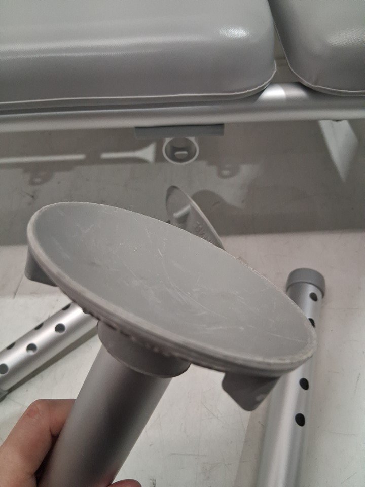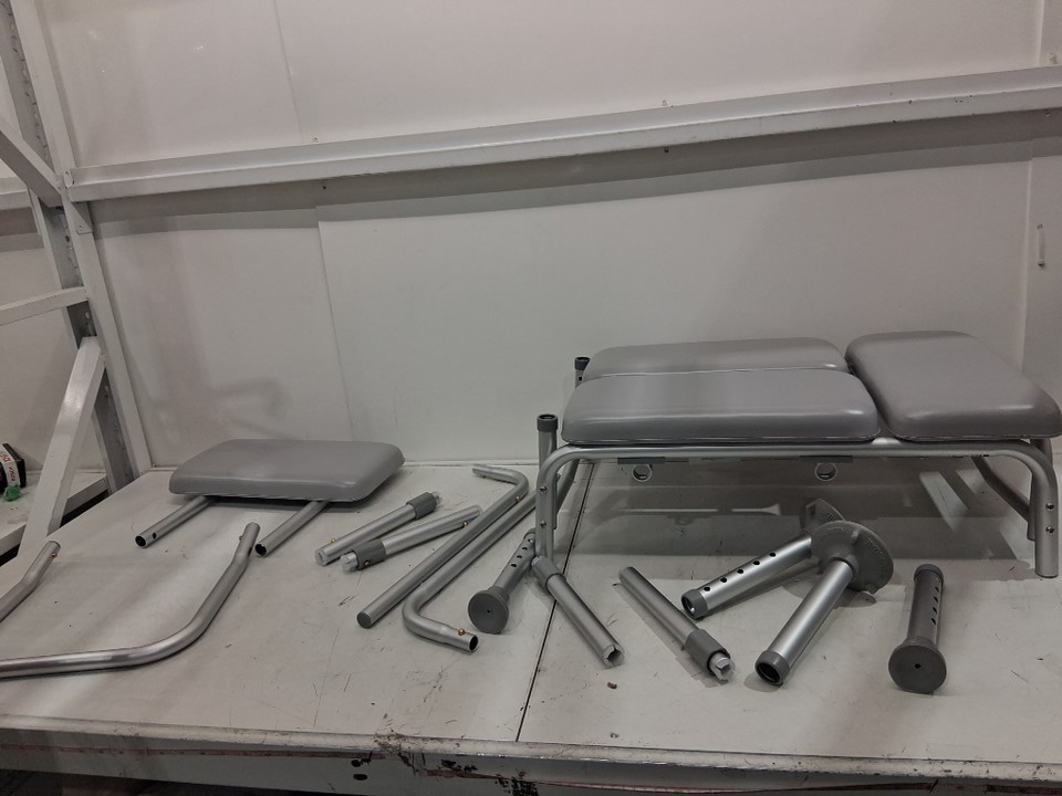 There is some dirt on the legs for bench and some marks on the poles, see photos.
