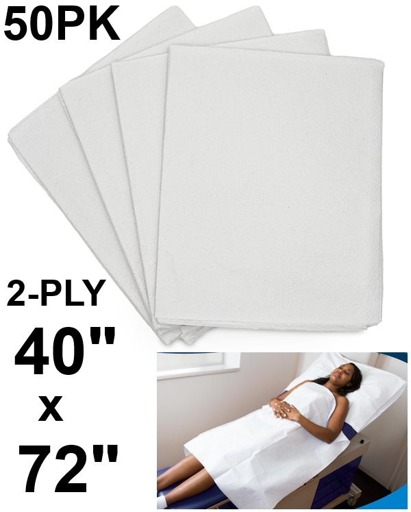 50PK Avalon Papers 2 Ply drape sheet tissues for hospitals or doctor's office - 40" x 72" - White