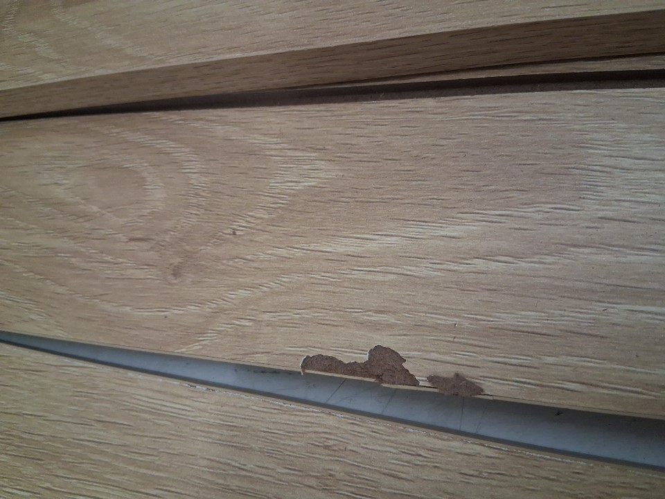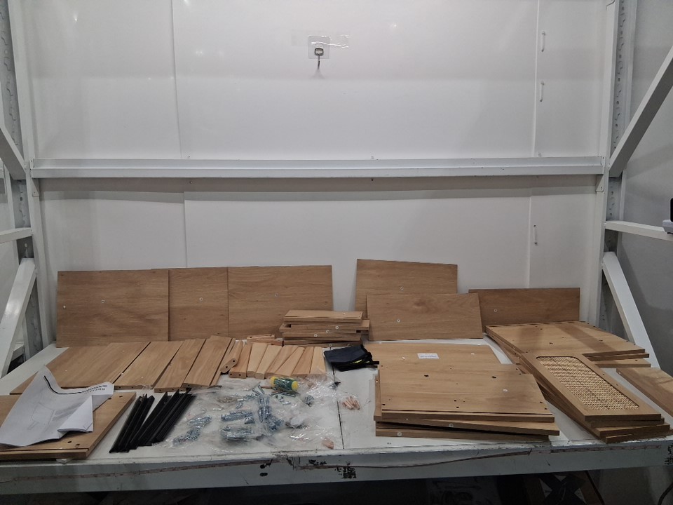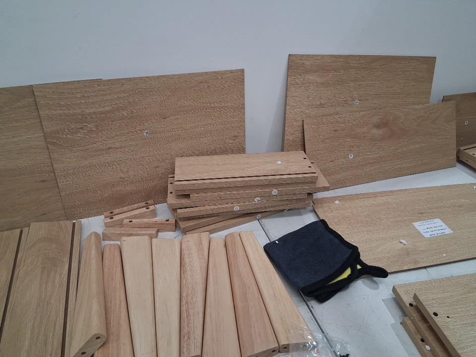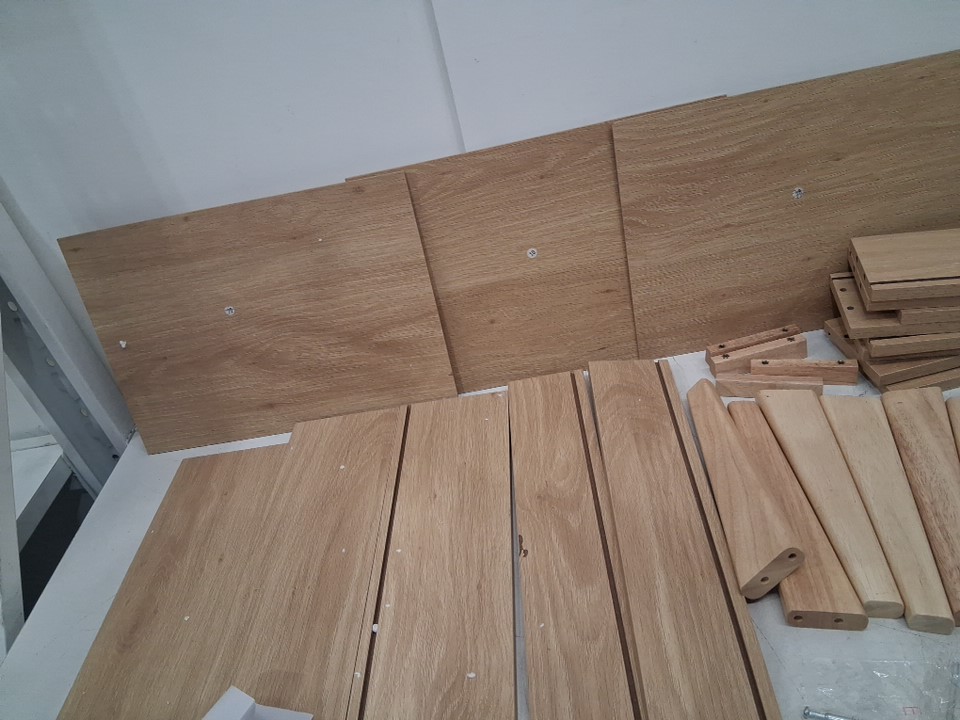 There are some parts for the end tables that are damaged, most of the screw seem to be there but some could be missing, see photos.