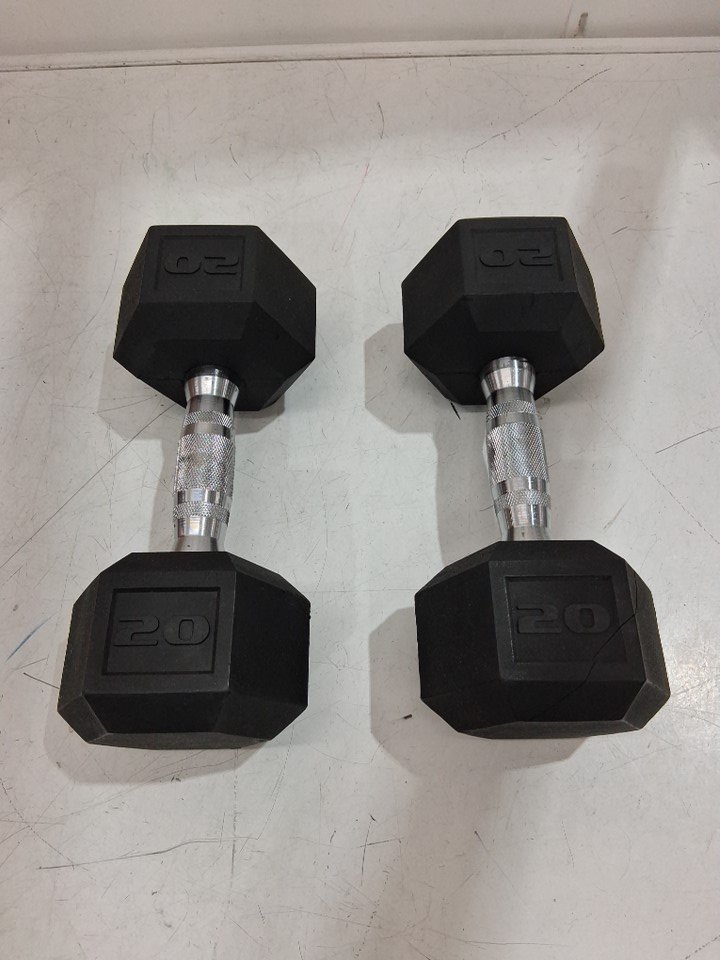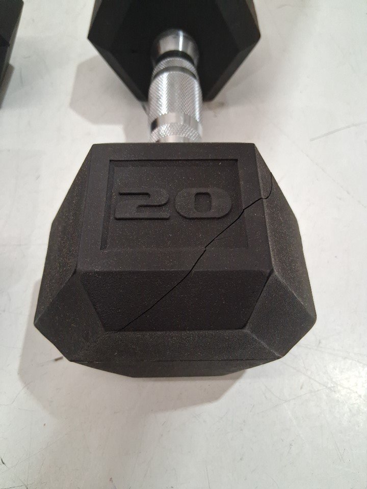 please note there is a slight cosmetic crack in one dumbbell