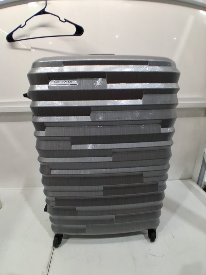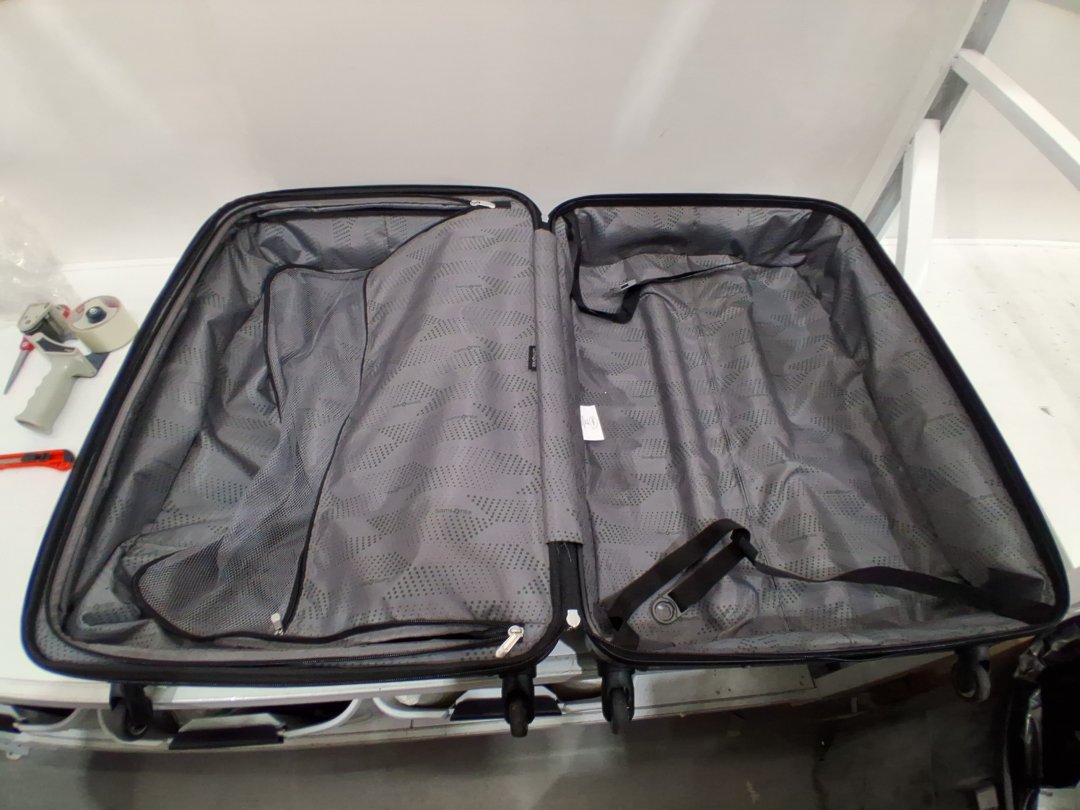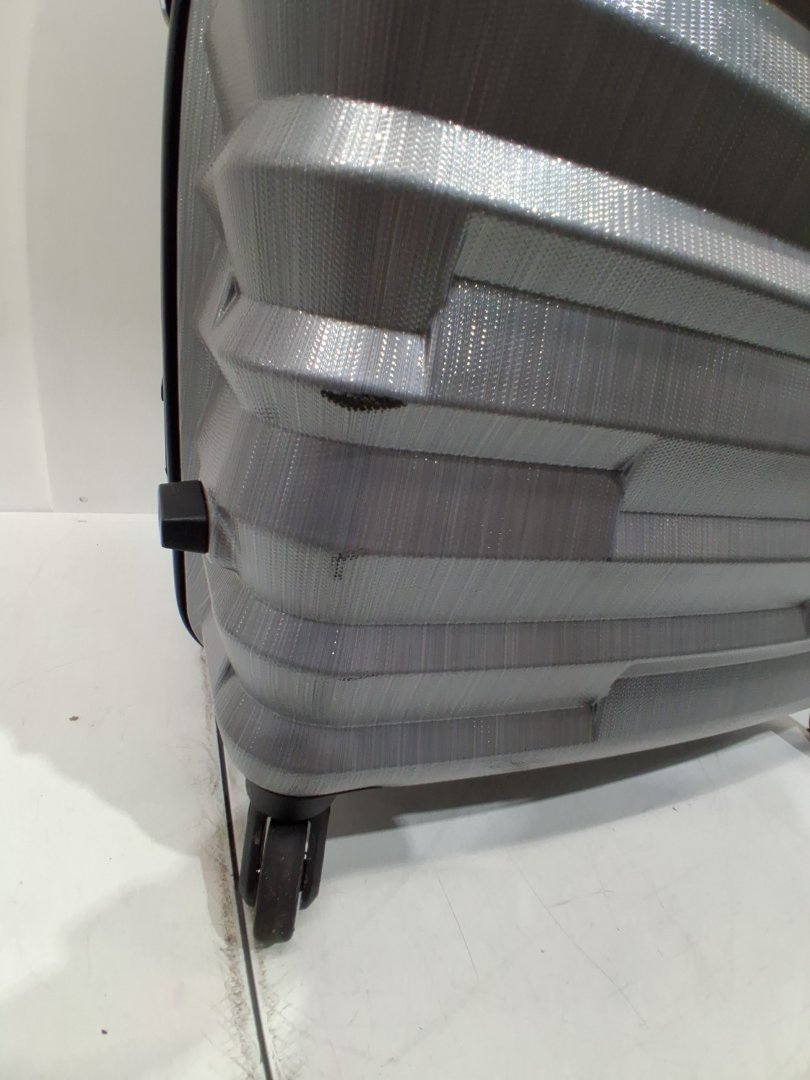 Item has mild black scuffs on the front side of the suitcase.