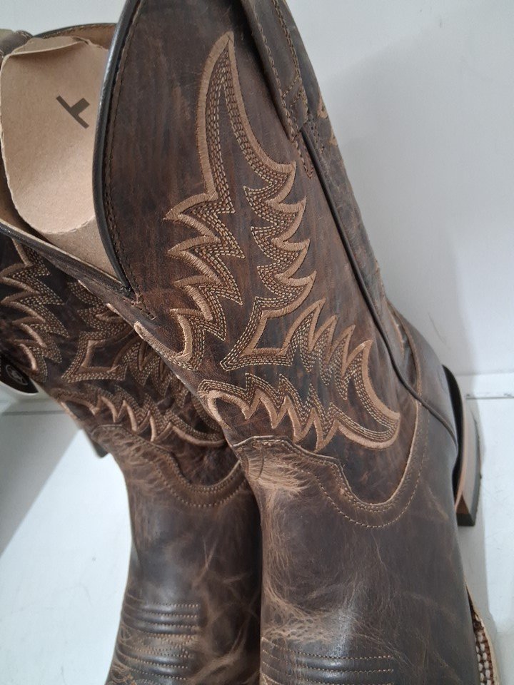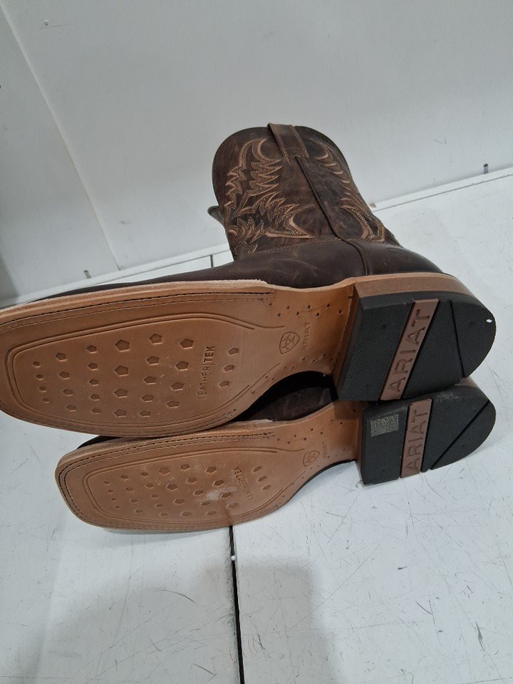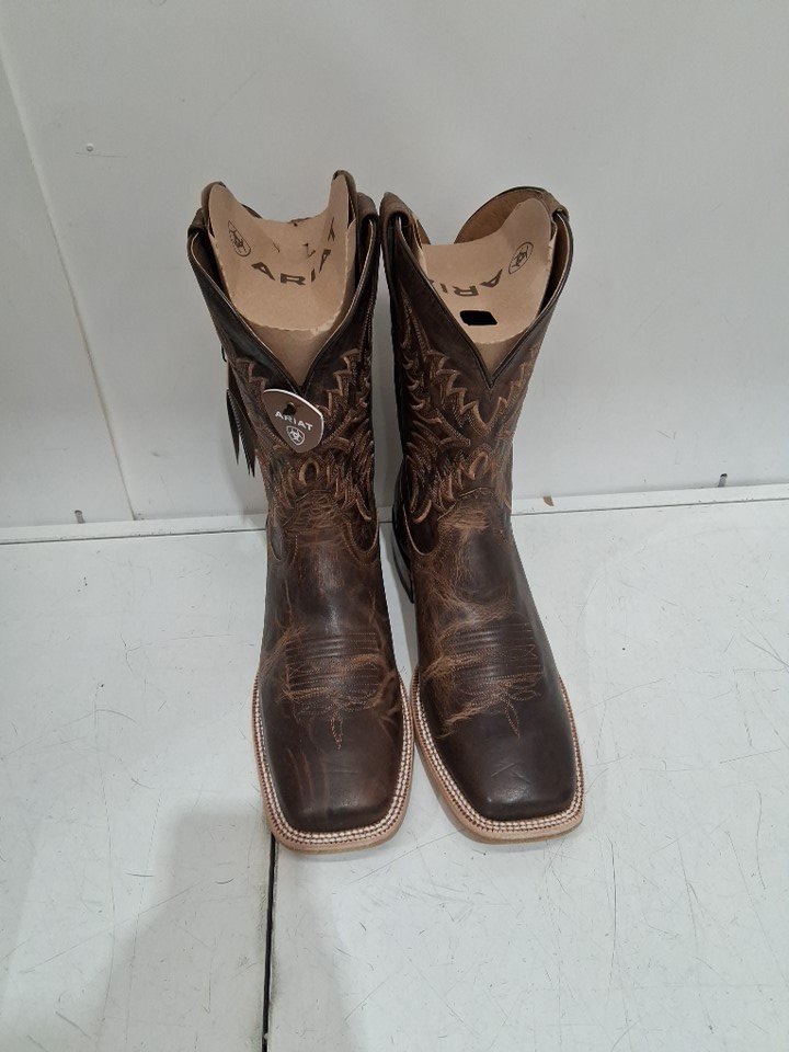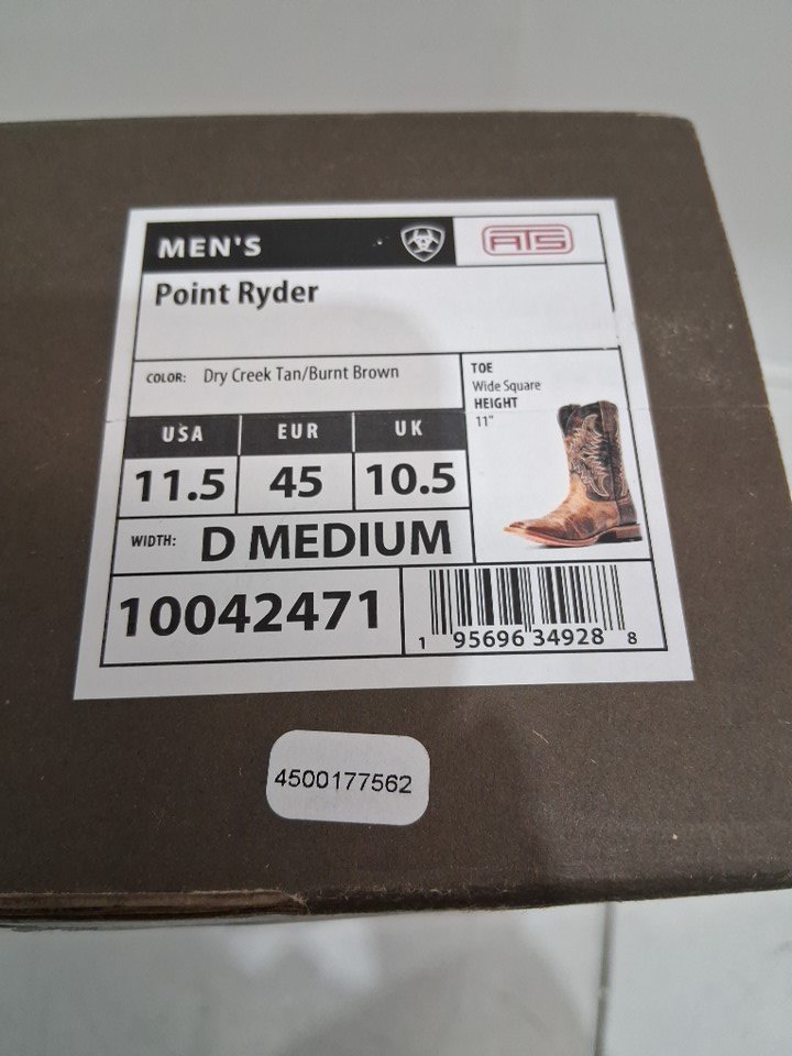 MENS ARIAT POINT RYDER SQUARE TOE COW BOY BOOTS - SIZE 11.5 d medium - DRY CREEK TAN/BURNT BROWN (STYLE: P24602_M_FOO)