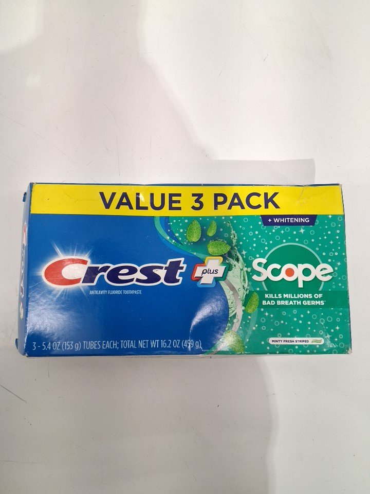3pk crest plus scope whitening anticavity fluoride toothpaste - 153g each - minty fresh