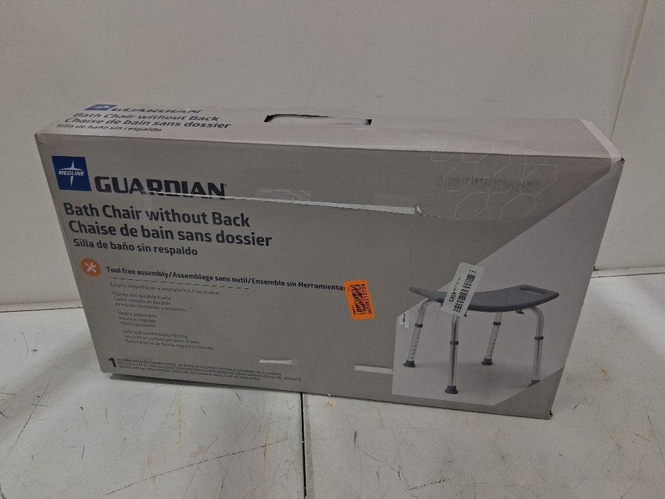 Medline Guardian Bath Chair without Back - 400LB Capacity - White/Grey (model: g2-201krx1)