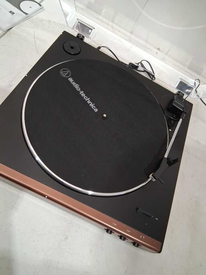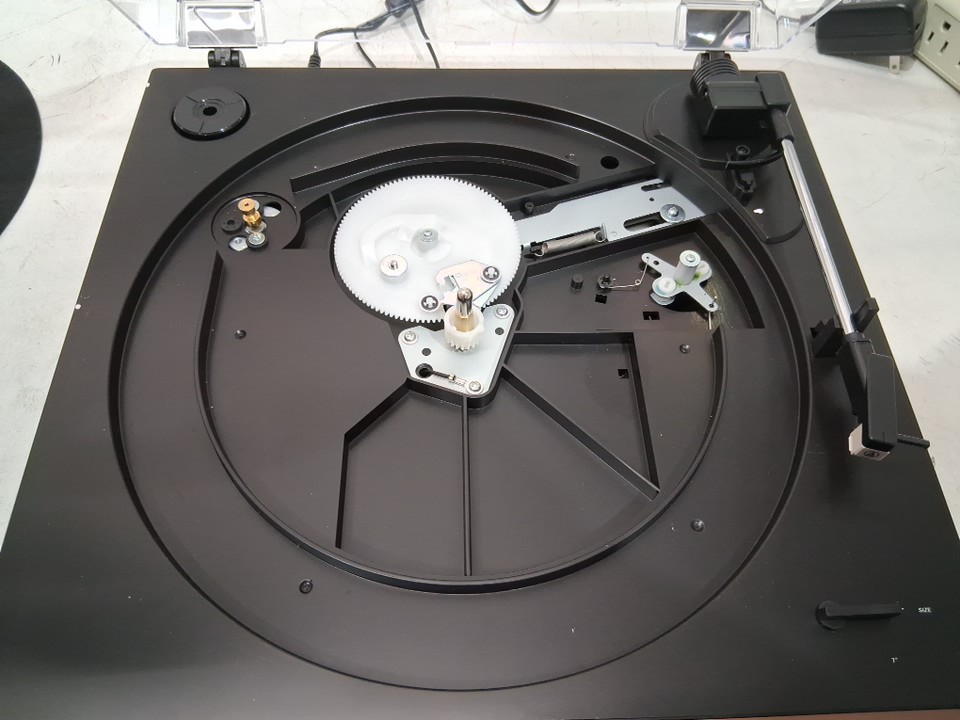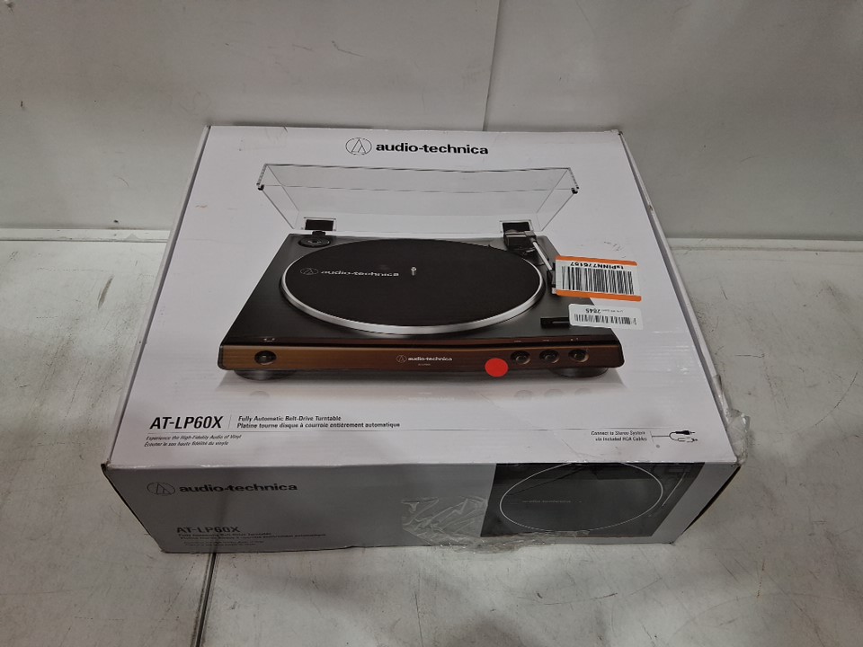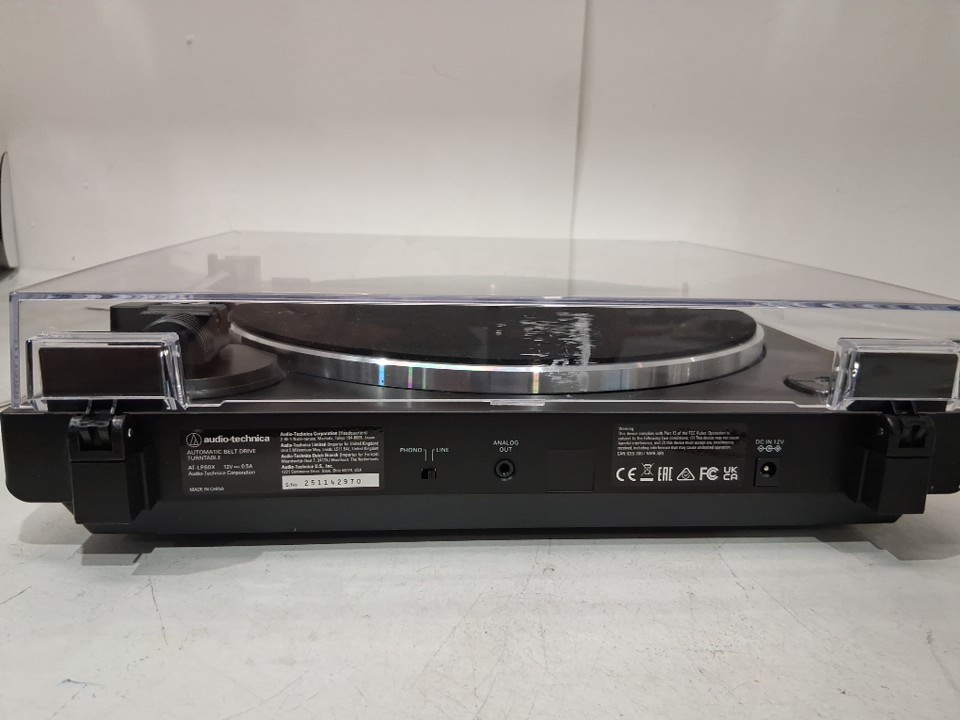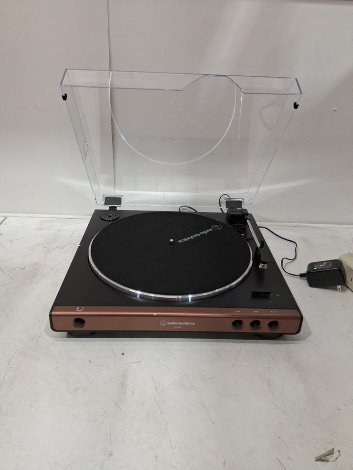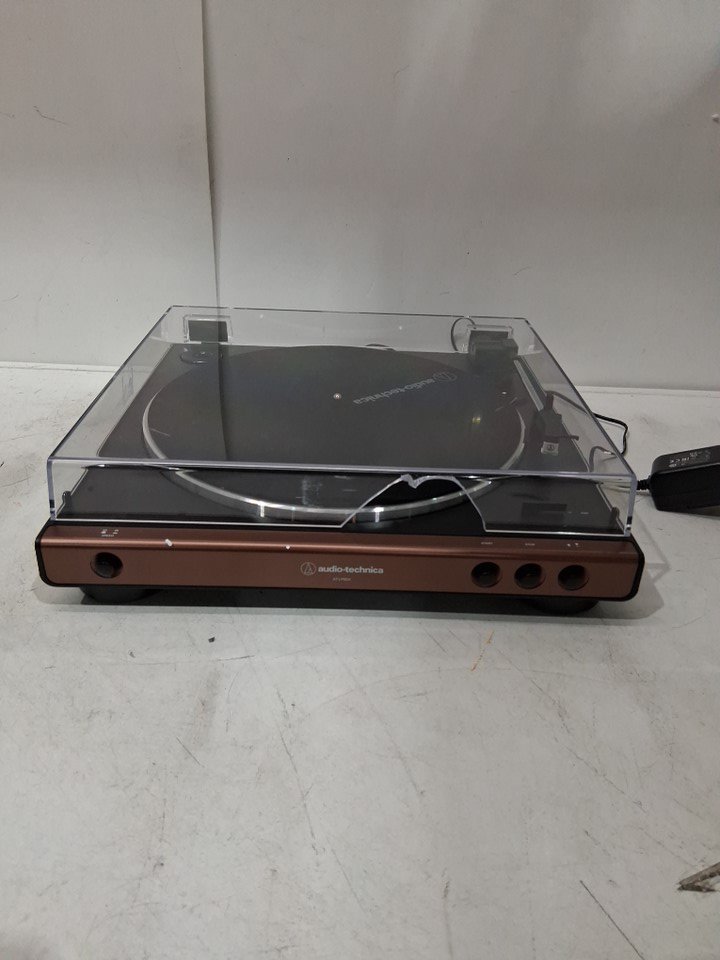 item has light scuff / scratch marks dust cover is cracked / missing parts needle is missing from item all this indicates prior use item was tested for basic power only