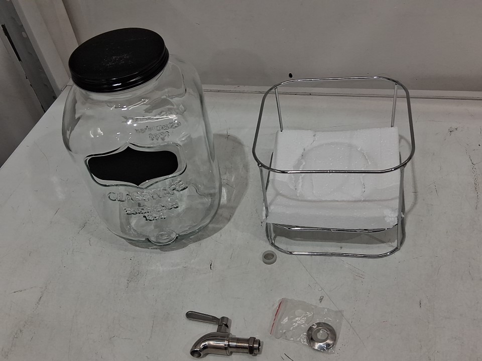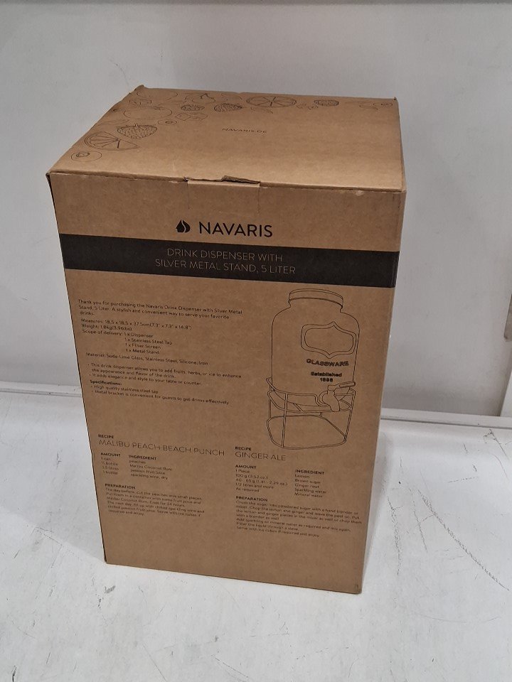 Navaris Drink Dispenser With Silver Metal Stand - 5L Glass Drink Container With Tap - clear (model: nav000017kn004c)