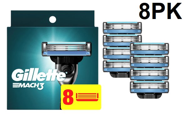 8PK MEN'S GILLETTE MACH3 RAZOR BLADE CARTRIDGES