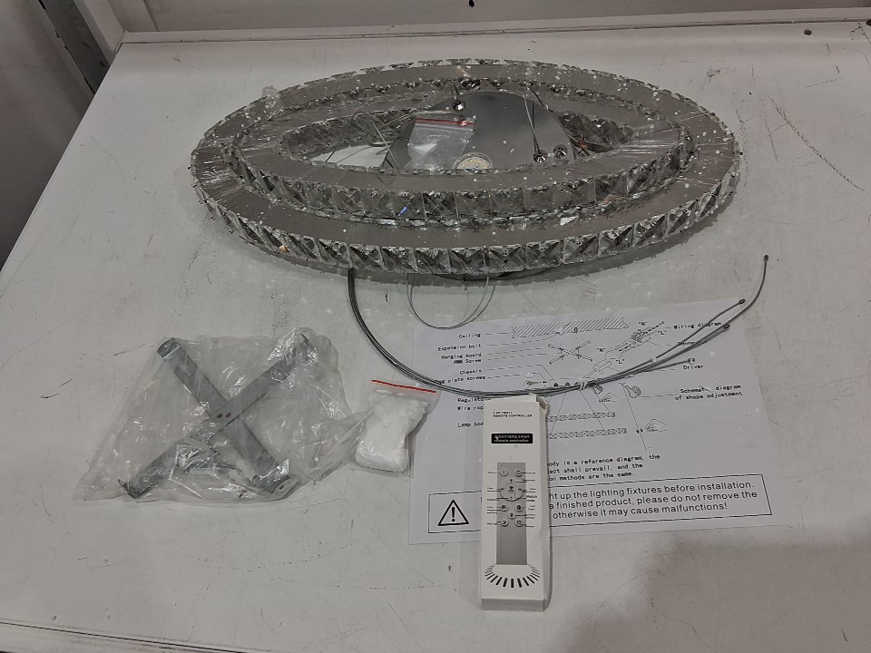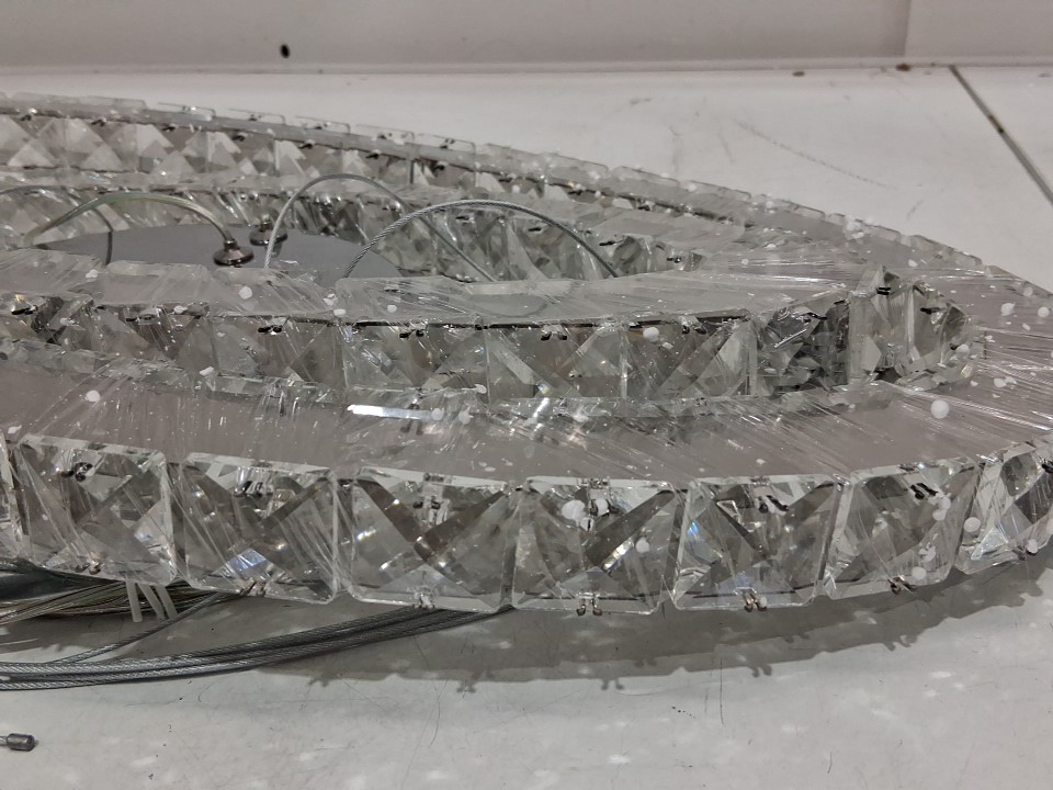 Finktonglan Modern Oval 2 Rings Dimmable Crystal Chandelier for Dining Room and Bedroom - 23.6'', 6500k, 58W, White Light - silver/clear