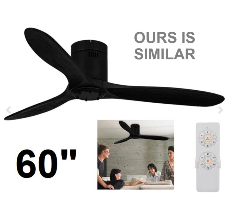 Reversible Ceiling Fan with 3 Solid Wood Blades, 6-Speed Setting AND Remote Control - 120V/60HZ - 60" - BLACK