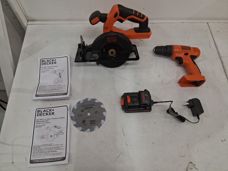 One battery in package. Drill is model LD120 instead of LDX120, shows signs of prior use. All other contents appear new. (See photos)