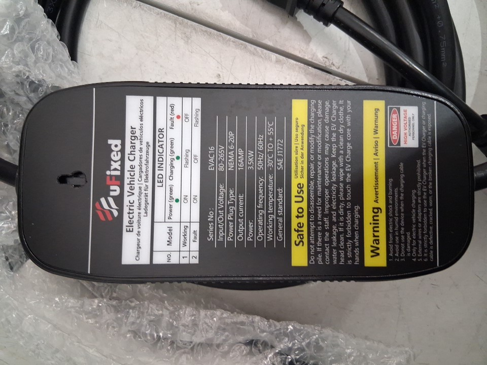 UFixed Type 1 Portable Electric Vehicle Charger with Cable Holder - 16AMP - 265V - Compatible with J1772 EV Models* - NEMA 6-20 & NEMA 5-15 Plug - White/Black (Model: EVAC16)