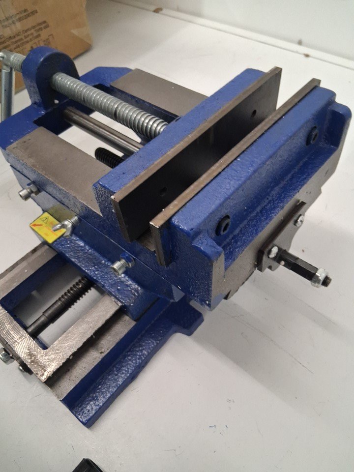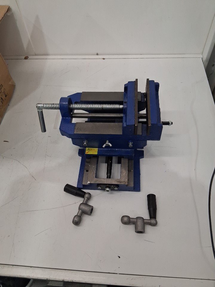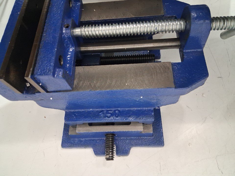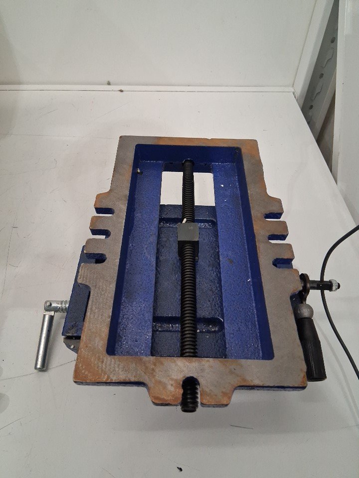 vise has visible scuffs and scratches and bottom has rust discoloration. Hardware is missing
