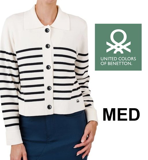 women's united colors of benetton stripped milano button front cardigan - medium - white/black (style: 1934774)