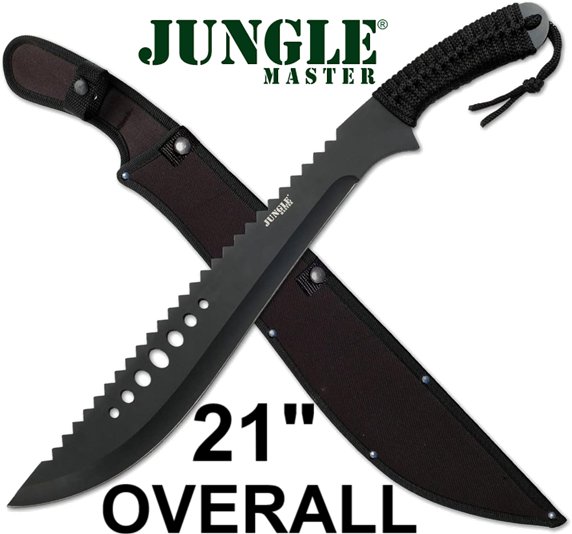 jungle master stainless steel machete with corded wrapped handle - 21" overall - black (model: jm-031b)