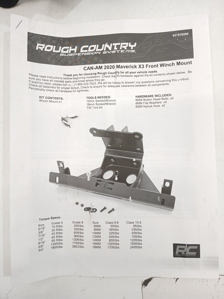 Rough Country Winch Front Mount - For 2017-2022 Can-Am Maverick X3 4WD - Black (Model: 97028)