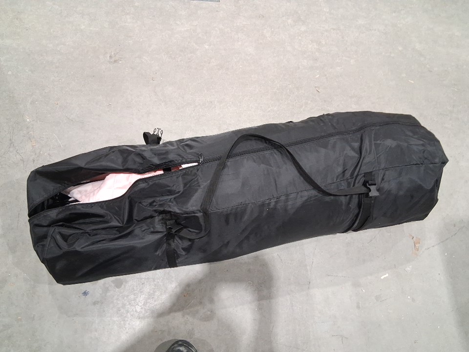 The windows are torn. Foot pegs missing plastic covers. Please note the tent was opened and assembled to do a proper inspection and may have warehouse dust present.