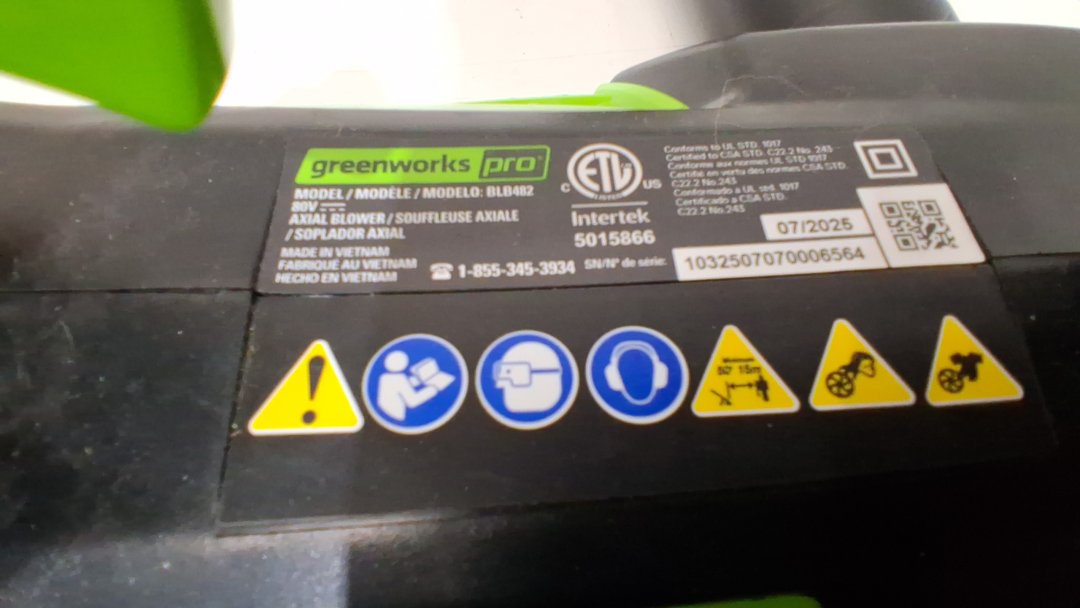 **TOOL ONLY** GREENWORKS PRO CORDLESS AXIAL BLOWER - 80V - Green/Black - (MODEL: BLB482)