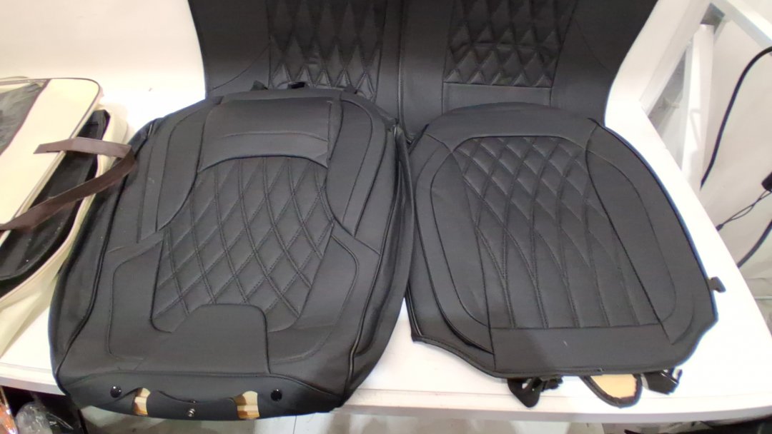 5PC FREESOO Waterproof Automotive LEATHER Car Seat Covers Full Set - UNIVERSAL FIT - BLACK/GREY