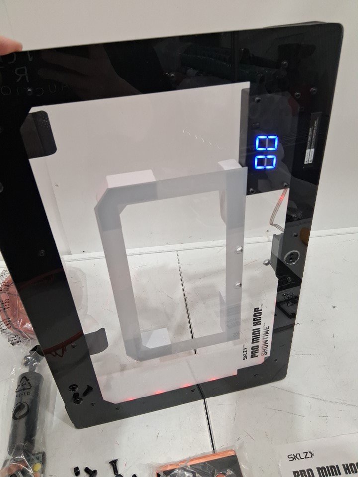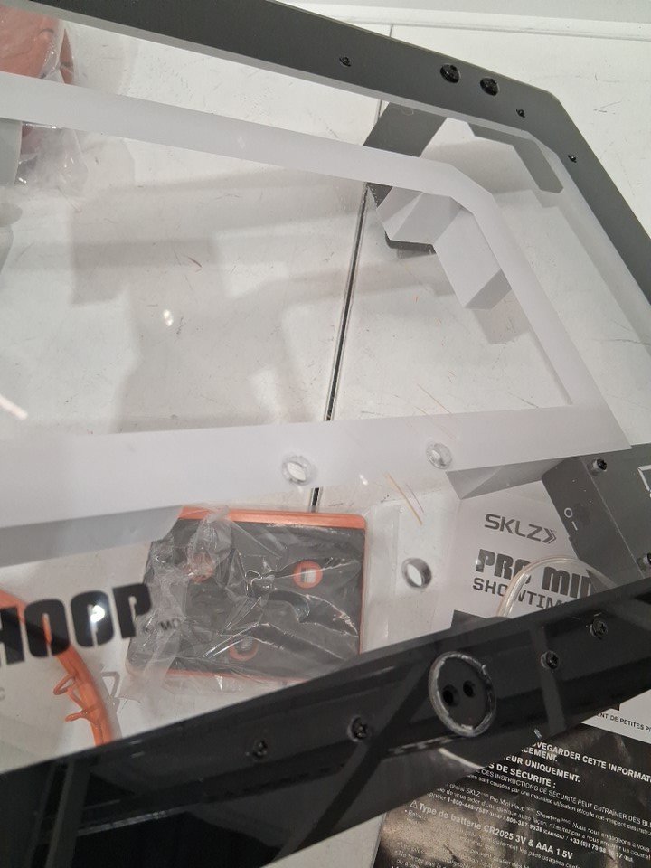 item has light scuffs and scratches on the backboard and marks that indicate previous installation, tested for power