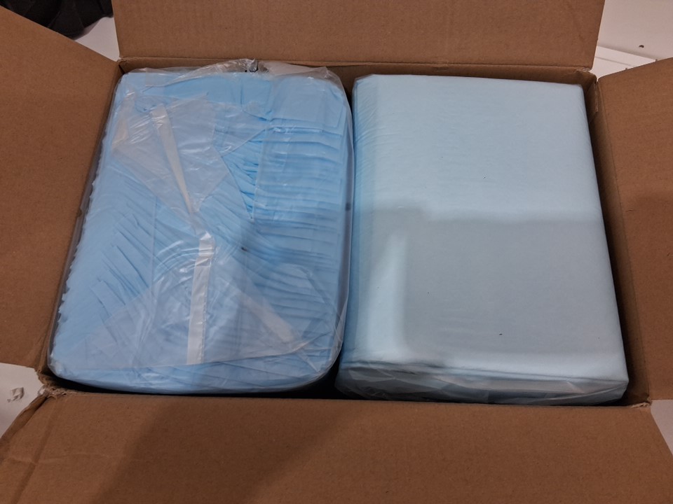 100pk kirkland signature absorbent pads - extra large 30" x 23" - blue/white (model: 956696)