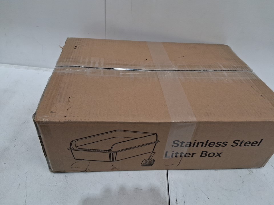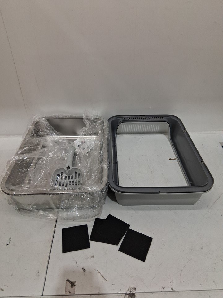 Fusblom Stainless Steel Cat Litter Box with SCOOP - LARGE - 19.7" X 13.8" X 8.3" - GREY