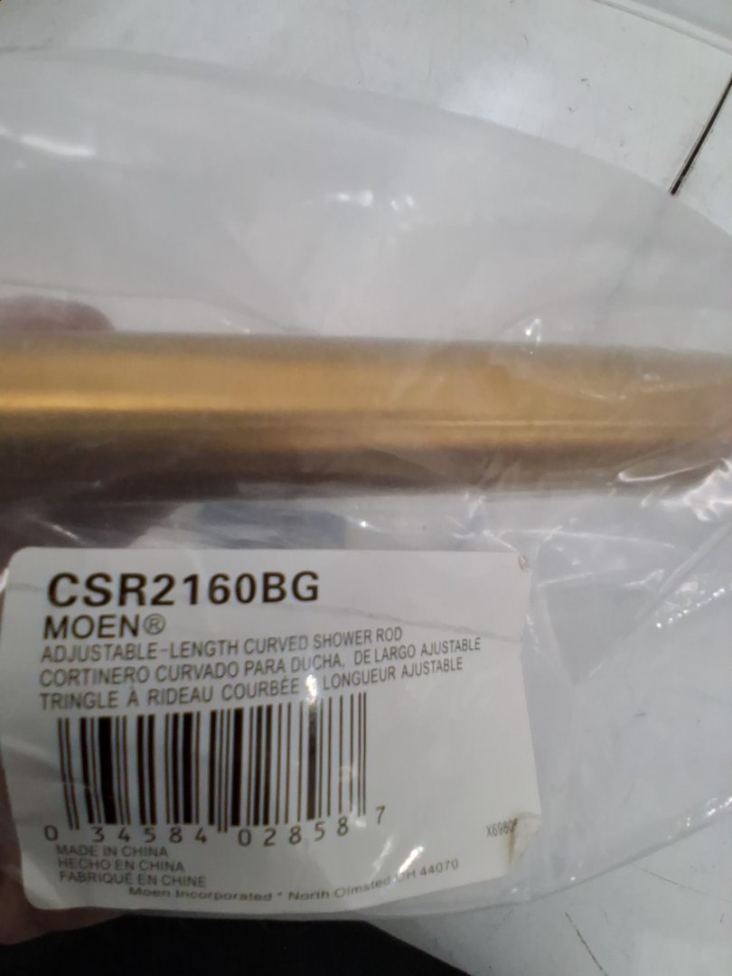 MOEN ADJUSTABLE LENGTH FIXED MOUNT SINGLE CURVED SHOWER ROD - 54" TO 72" - BRUSHED GOLD (model: CSR2160BG)