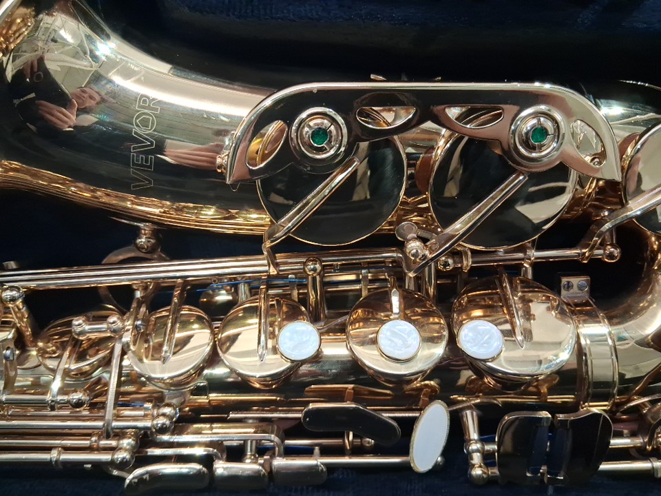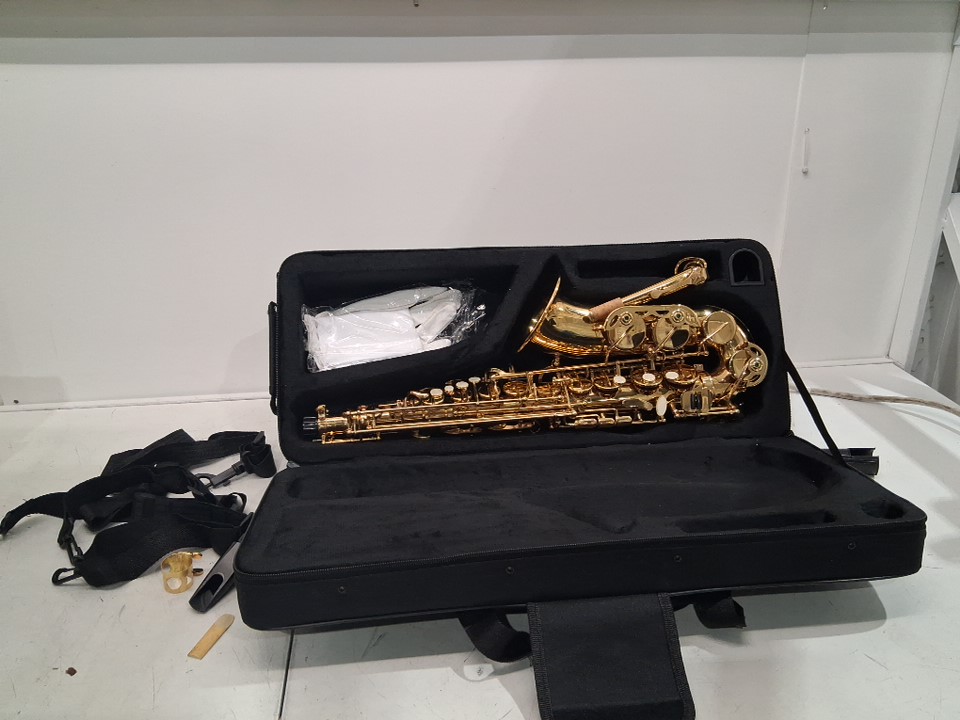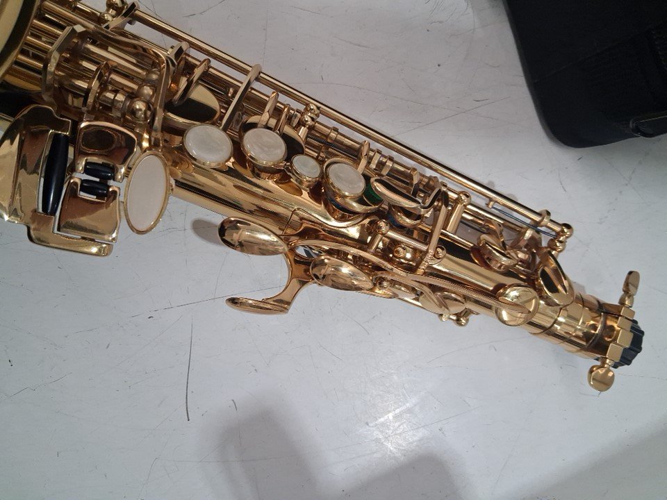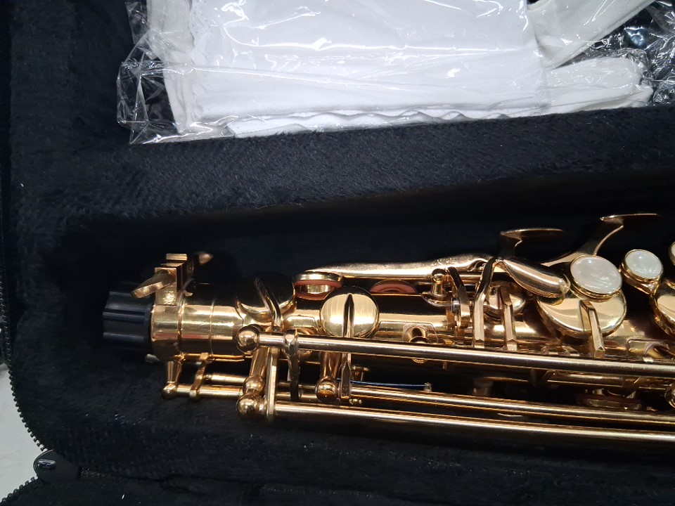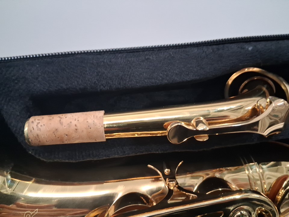 A piece appears to be broken for saxophone and missing cleaning cloth rod, see photos.